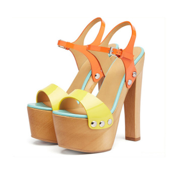 صنادل صيفية فاخرة عالية الجودة ملونة عالية الكعب سميكة عالية الكعب للنساء صنادل بكعب عالي